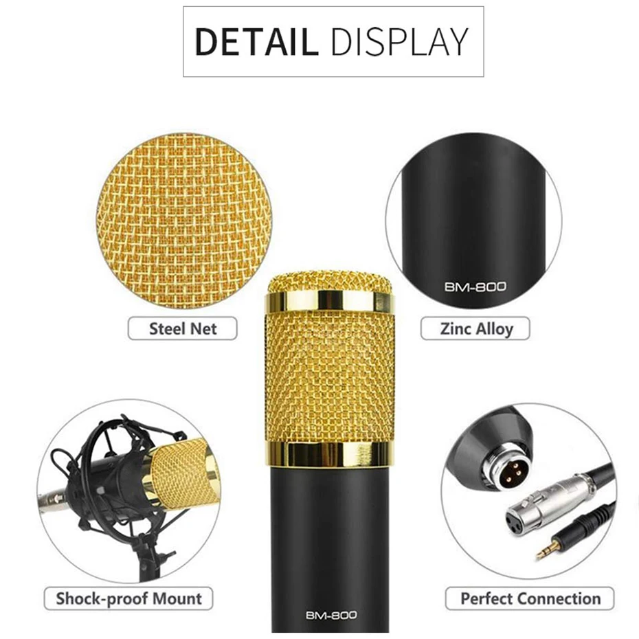 bm 800 Microfono kit Studio Microphone Recording Condenser Karaoke Microphone For Audio Sound Recording MicrophoneBuy Now On Aliexpress