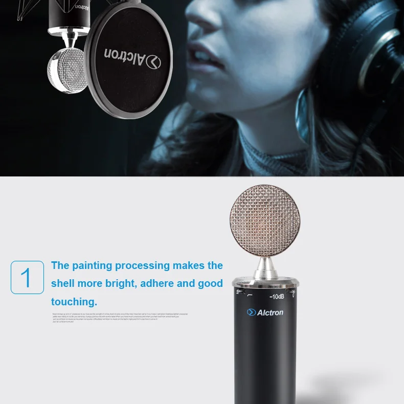 | Alctron mc1500 professional FET condenser microphone recording microphone with popfilter and stockmount Aluminum case package |