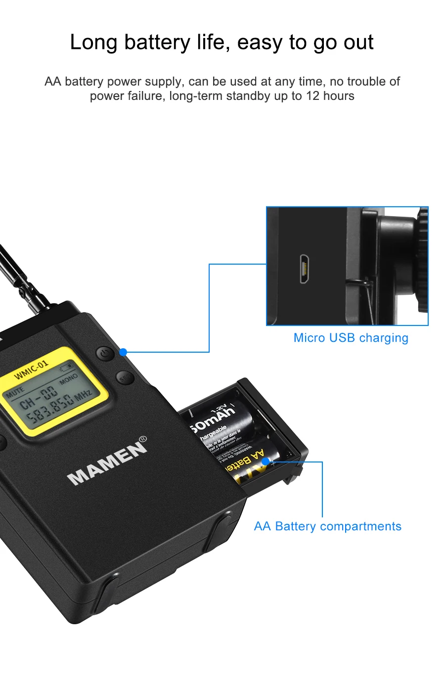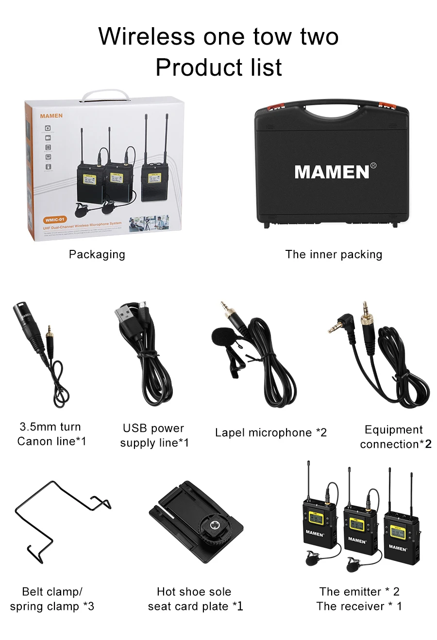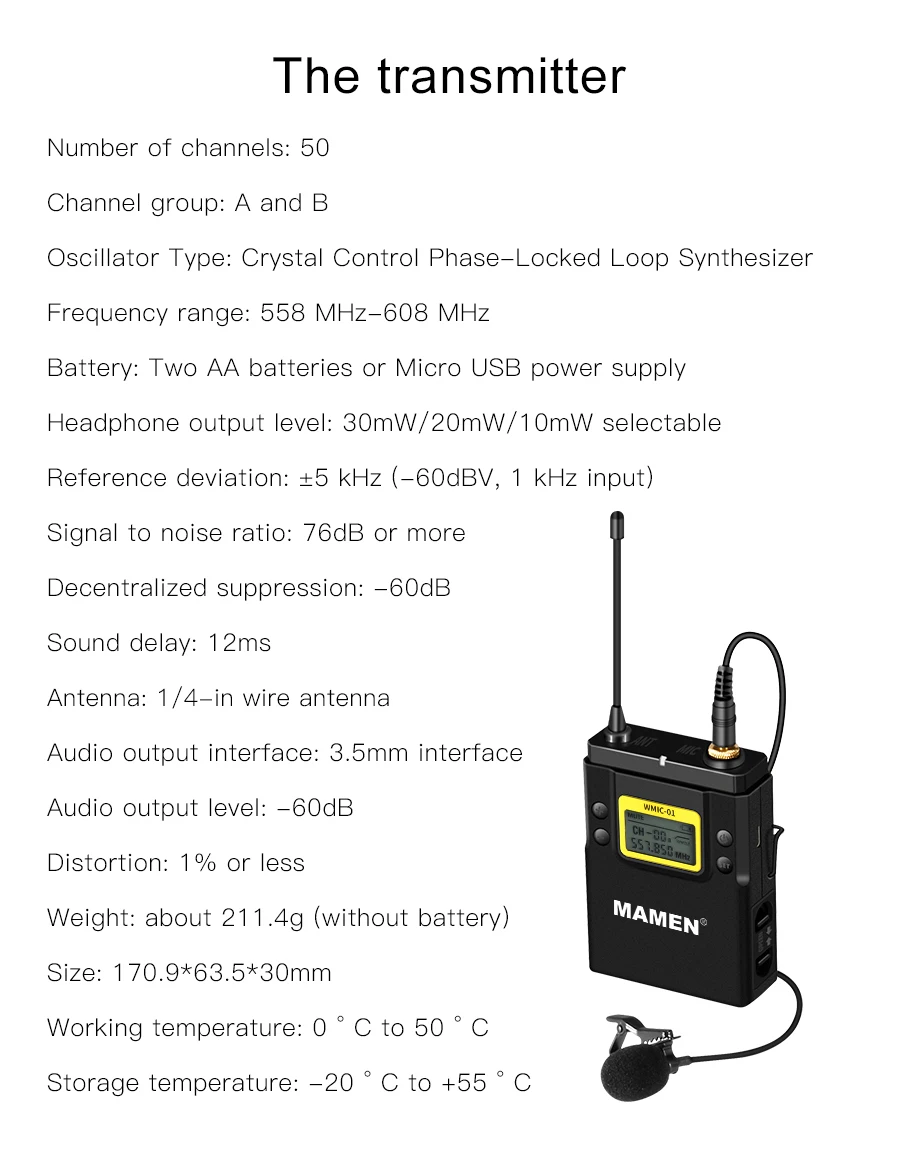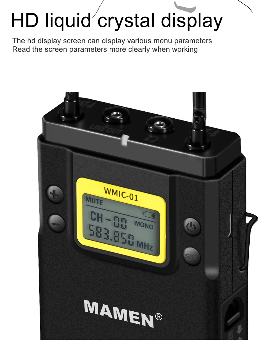 | MAMEN Professional Wireless Microphone UHF Dual Channel Super HD 530-590MHz Recording Microphone 60-100m Reception distance |