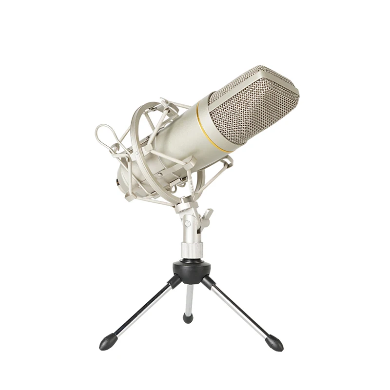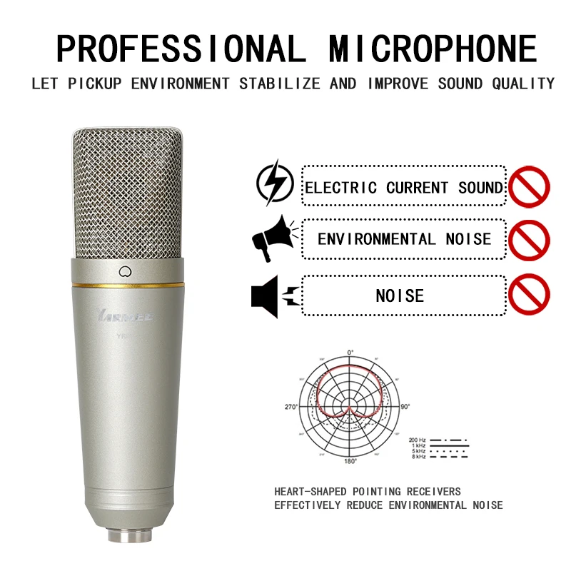 DESCRIPTION USB computer Microphone is a condenser microphone with cardioids characteristics, designed for TV studios, recording studios, broadcasting stations and on-stage performances. Its smart design permits flexible and unobtrusive positioning. The gold-plated diaphragm it adopts assures low self-noise, high output and the accurate reproduction of even the subtlest sounds, especially high frequency signals not easily reproduced by conventional microphones. FUNCTION 1* Suitable for recording, broadcasting, as well as on-stage performance. 2* Combination of acoustic design, High sensitivity, low self noise and low distortion 3* Cardioid directivity pickup can effectively enhance the main sound source, inhibit background noise. 4* The microphone ontology using alloy material manufacture, strong and durable. 5* Microphone design air filtration function, can eliminate noise is singing breath. 6* Standard XLR connection; 48V phantom power supply. SPECIFICATIONS Picture