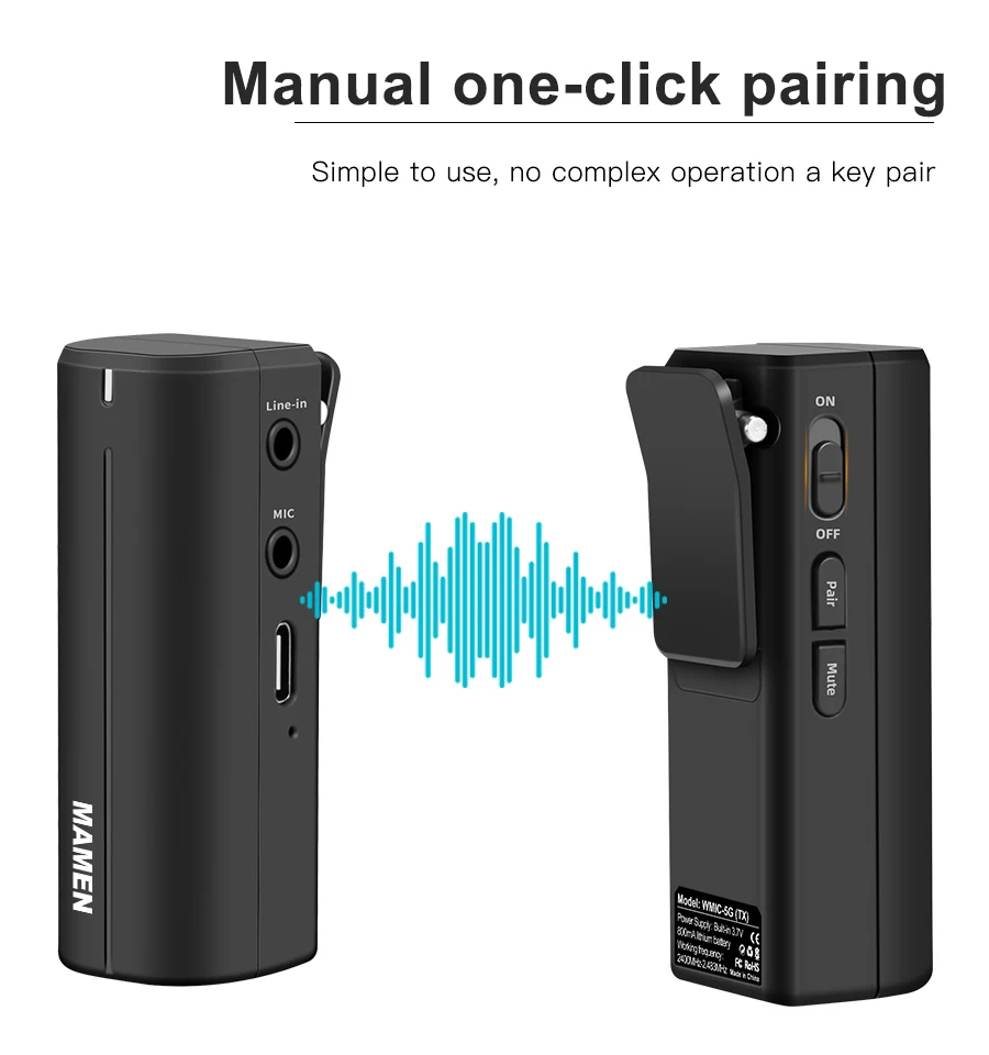 | MAMEN 2.4G Wireless Microphone Real-time Monitoring Lavalier Microphone For Smartphone Camera DSLR DV Mini Recording Microphone |