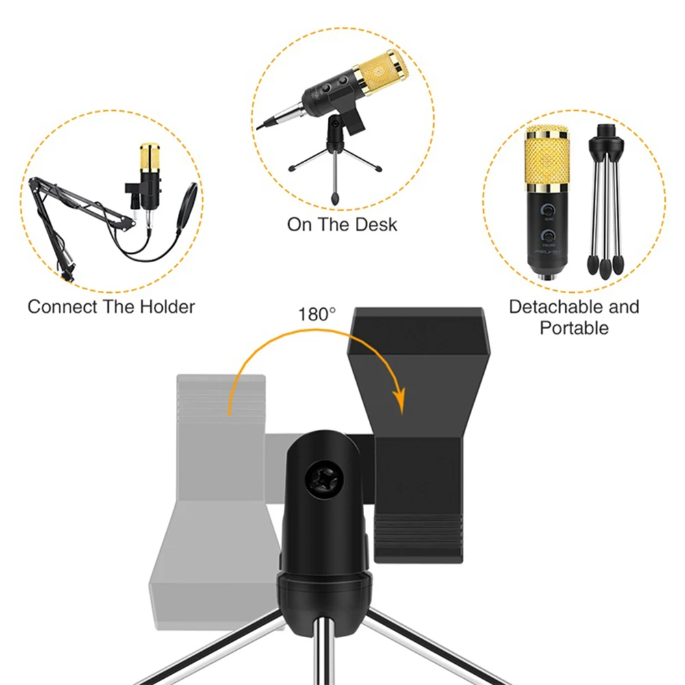 Portable Foldable USB Studio Audio Recording Microphone Plug-N-play With Shock Mount Stand